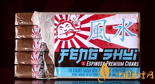 雪茄道場和Espinosa推出了一款聯(lián)名雪茄,名字就叫做風(fēng)水,上面還有一行中文“你的幸福的地方”,估計(jì)是他們理解的風(fēng)水含義。雖然強(qiáng)調(diào)的是中國古老的風(fēng)水,不過看風(fēng)格非常日本化,這也沒辦法,因?yàn)檠┣训缊龅娜讼駆ogo也是老外理解的臉譜化中國人。