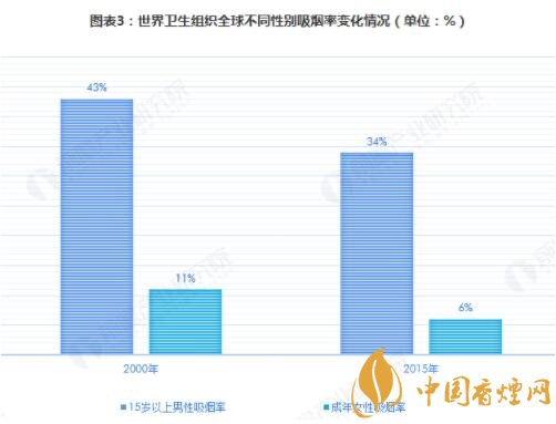 世界衛(wèi)生組織的報(bào)告指出,2000年以來全球男性和女性的吸煙率均有所降低,但吸煙人數(shù)仍在增長。具體來看,全球15歲以上的男性吸煙率從2000年的43%下滑到34%,而女性吸煙率則從2000年的11%下滑到6%。從吸煙人數(shù)的規(guī)模來看,目前全球共有11億成年煙民以及至少3.67億無煙煙草吸食者。此外,全球還有大約2400多萬名13歲-15歲的青少年吸食煙草,另有1300多萬名青少年使用無煙煙草制品。