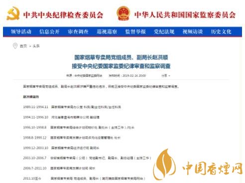 目前,國家煙草專賣局網(wǎng)站上關(guān)于趙洪順的相關(guān)新聞報(bào)道及重要講話已被刪除。