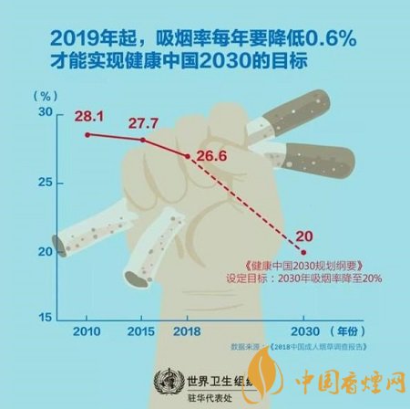 這是中國政府發(fā)布的首個面向人群、以多部門協(xié)作的形式應(yīng)對非傳染性疾病風(fēng)險因素的健康戰(zhàn)略。《健康中國行動》確定了國家將重點關(guān)注的15個專項行動,以提高全民健康水平、推進實現(xiàn)健康中國目標。煙草控制是第四個專項行動,用以實現(xiàn)到2030年將成人吸煙率降低到20%的目標。這體現(xiàn)了中國對可持續(xù)發(fā)展目標和世界衛(wèi)生組織《煙草控制框架公約》的承諾。然而,中國的煙草控制仍然面臨許多挑戰(zhàn)。2018年中國成人煙草調(diào)查顯示,15歲及以上人群的吸煙率仍然很高,達26.6%。