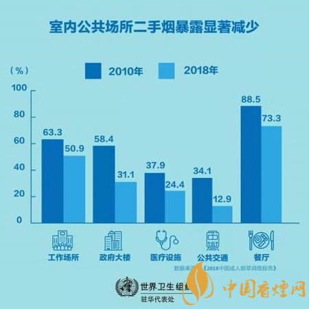 最近發(fā)布的2018年中國成人煙草調(diào)查顯示,過去十年中國控煙工作取得了重要進展。與八年前相比,現(xiàn)在中國人遭受二手煙危害的幾率要小很多,室內(nèi)公共場所二手煙暴露的顯著減少就證明了這一點,比如工作場所(63.3%降至50.9%),政府大樓(58.4%降至31.1%),醫(yī)療設(shè)施(37.9%降至24.4%),公共交通(34.1%降至12.9%),甚至餐廳(88.5%降至73.3%)。