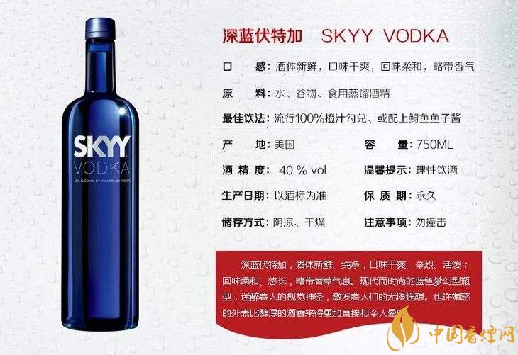 Skyy深藍(lán)伏特加的價(jià)格:45.00元/瓶;