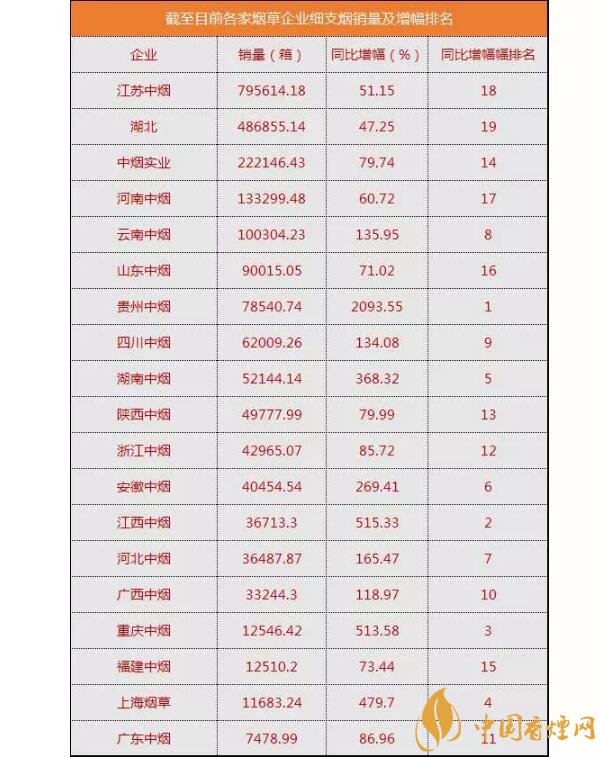 表格中,細(xì)支煙銷售量排名銷量總量位居首位的依然是江蘇中煙。雖然,今年各地反映炫赫門限量供應(yīng),但依然沒有撼動(dòng)蘇產(chǎn)細(xì)支第一的地位。最新統(tǒng)計(jì)消息稱,南京(炫赫門)截至11月底的銷量早已突破了55萬箱,這樣的炫赫門真的很贊!增幅最為明顯是貴州中煙,78540.74箱銷量。其中功不可沒的當(dāng)初貴煙(跨越)。這款去年上市的新品,今年1—11月份的銷量統(tǒng)計(jì),已經(jīng)超過了5.8萬箱,成為了國內(nèi)細(xì)支爆珠的第一大規(guī)格。#p#副標(biāo)題#e#