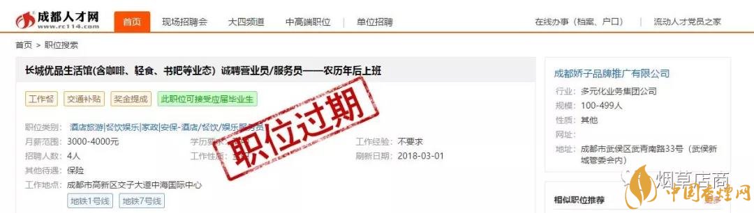 前面為大家介紹了,四川中煙第一次新零售發(fā)聲 創(chuàng)新高質量發(fā)展全力謀變(優(yōu)品生活體驗店)。朋友圈里確實有長城優(yōu)品生活館的H5宣傳介紹,而且也確實聲稱自己是“全國首家煙草集合店”。在介紹里面也有它是“煙草、咖啡、輕食、書籍與文創(chuàng)產品”五大生活元素的完美融合者。它是四川中煙產品展示銷售平臺。據說本月成都長城優(yōu)品生活館開啟。此外,小編也在成都人才網看到了已經過期的“長城優(yōu)品生活館(含咖啡、輕食、書吧等業(yè)態(tài))誠聘營業(yè)員/服務員——農歷年后上班”的招聘啟事,通過職位描述可以感受店內的大概服務