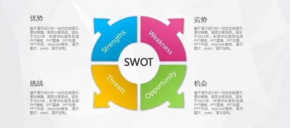(一)、SWOT是一種分析方法,用來(lái)確定企業(yè)本身的競(jìng)爭(zhēng)優(yōu)勢(shì)(strength),競(jìng)爭(zhēng)劣勢(shì)(weakness),機(jī)會(huì)(opportunity)和威脅(threat)。