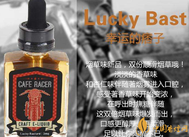美國金獎煙油有哪些?美國金獎電子煙油Cafe就是其中一款,CAFE RACER摩托車系列煙油為加州恩西尼塔斯的始創(chuàng)者手工制作,均使用方形瓶裝,全系列有3款口味并都貼有印著機(jī)車圖案的標(biāo)簽,為:Lucky13(幸運(yùn)13)、Pech guzzi(桃子機(jī)車,guzzi為意大利語的摩托車)和Yogurt bomb(優(yōu)格炸彈),3款煙油的PG:VG均為30:70,適用于儲油和滴油霧化器,其中的Lucky13為美國峰會金獎煙油上的煙草口味金獎得主。