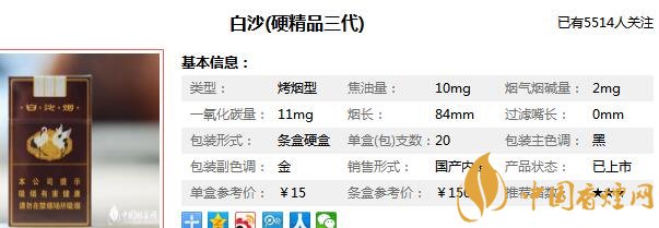 以上內(nèi)容是由香煙網(wǎng)小編為大家介紹的關(guān)于,白沙三代多少錢一包以及白沙煙精品三代價(jià)格圖片相關(guān)信息,想要了解更多有關(guān)信息詳情請(qǐng)點(diǎn)擊:休閑利群多少錢一包。