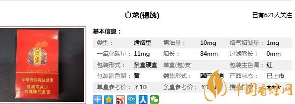 錦繡真龍香煙參數(shù)信息