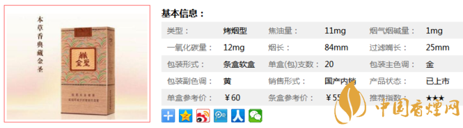 為進(jìn)一步強(qiáng)化“金圣”的品牌特征,江西中煙將他們自主研發(fā)的第三代“金圣香”(中草藥添加劑)運(yùn)用于“金圣”(典藏·本草香)的配方中,煙氣更加飽滿協(xié)調(diào)、更具層次感。下面我們一起來看看它的參數(shù)信息:焦油量11mg,煙堿量1mg,一氧化碳量12mg.