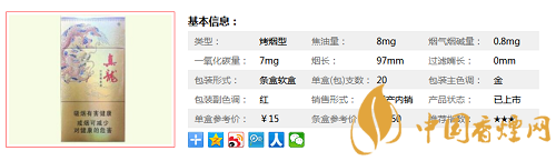 真龍所采用的原料來自巴西、津巴布韋以及國內(nèi)云南、貴州、湖南等國際國內(nèi)優(yōu)質(zhì)煙葉產(chǎn)區(qū),進入生產(chǎn)流程前,還要經(jīng)過精工整選。真龍高端規(guī)格還采用了經(jīng)過山洞貯藏自然醇化的煙葉,卷煙成品的煙葉原色原香保持良好,品質(zhì)純正,香氣充足。下面一起來看下真龍凌云的具體參數(shù):一盒20支,煙長97mm,焦油量8mg,煙堿量0.8mg,一氧化碳量7mg。