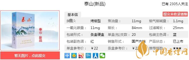 泰山新品是泰山家族最早生產的規(guī)格,歷史悠久,擁有著龐大的固定消費群體,在繼承“泰山”卷煙濃、透、清傳統(tǒng)的特點同時,吸味醇正綿長、口感細膩舒適,充分體現(xiàn)“泰山”渾厚質樸、端莊清秀的神韻。經香煙網小編市場調查價格為22元/包。