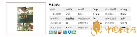 | 類(lèi)型 :烤煙型 | 焦油量 :5mg | 煙氣煙堿量 :0.5mg | 一氧化碳量 :5mg |