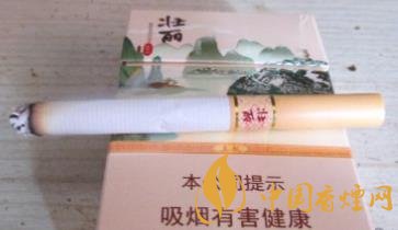 真龍壯麗香煙的畫面是以桂林山水為畫面,5包煙連在一起就是桂林山水全景圖。這包煙以象鼻山為畫面,山清水秀,竹排漁人,泛排江上,清新怡然,悠悠正在。煙支包裝簡約大方,在過濾嘴和煙的交接處有兩個金線圈,在圈中間豎寫著壯麗兩個字。