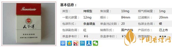 | 類型 :烤煙型 | 焦油量 :10mg | 煙氣煙堿量 :1mg | 一氧化碳量 :12mg |
