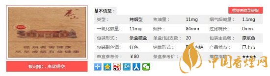 泰山1913所用原料來自濰坊小產(chǎn)區(qū)生態(tài)優(yōu)質(zhì)煙葉,片片甄選,歷經(jīng)四年以上自然醇化,原香透發(fā);由山東中煙首席配方師主持調(diào)配,不添加任何香精香料,保持生態(tài)濃香特色,全面回歸煙草本香。下面一起來看下泰山1913的具體參數(shù):一盒20支,煙長84mm,焦油量11mg,煙堿量1.1mg,一氧化碳量11mg。
