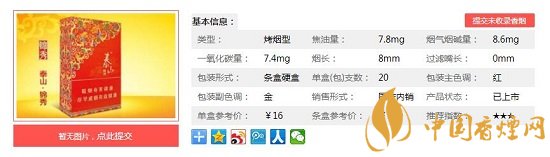 泰山錦秀使用優(yōu)質(zhì)的津巴布韋、美國、巴西等進(jìn)口煙葉,配以國內(nèi)醇化兩年以上的云、貴、川上等煙葉,采用獨(dú)特自然醇化與低溫處理工藝,經(jīng)過上百次反復(fù)配伍實(shí)驗(yàn)精做而成。下面一起來看下泰山錦秀的具體參數(shù):一盒20支,煙長84mm,焦油量8mg,煙堿量0.8mg,一氧化碳量9mg。