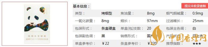 “2014 Pentawards全球頂級包裝設(shè)計(jì)大賽”金獎(jiǎng)包裝作品,中細(xì)煙支設(shè)計(jì)彰顯優(yōu)雅與品位,山水云竹演繹的多彩熊貓,毛發(fā)纖毫畢現(xiàn)、雙目炯炯有神,絕妙創(chuàng)意與精湛技藝相得益彰。該煙在低焦里算是不錯(cuò)的選擇,如果是喜歡抽的煙都很醇很烈就不推薦此煙了。