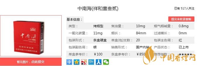 中南海祥和壹叁貳以科技創(chuàng)新為手段, 將“以人為本”的理念融入到產(chǎn)品設(shè)計中,在體現(xiàn)卷煙自然煙香的同時,致力于改善喉部舒適性,以充分體現(xiàn)“綿、柔、細、津、凈、甜”的中式卷煙產(chǎn)品風(fēng)格。經(jīng)香煙網(wǎng)小編市場調(diào)查中南海祥和壹叁貳售價為100元/包。
