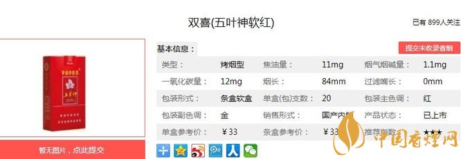 以上便是由香煙網小編為大家介紹的關于雙喜五葉神軟紅價格及參數 中式卷煙的代表分析的相關信息,想要了解更多有關內容請點擊:雙喜鴻喜價格表一覽 雙喜鴻喜定位于喜慶商務用煙
