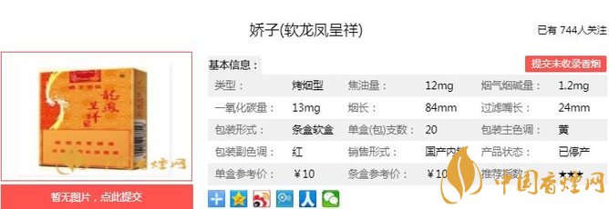 龍鳳呈祥經典產品,嬌子新裝貴氣登場,品質價格一脈相承。煙草本香透發(fā),煙氣細膩柔和,口感純凈舒適,回味綿長津甜,更特有紅茶香韻,淡雅怡然。經香煙網小編市場調查嬌子軟龍鳳呈祥售價為10元/包。