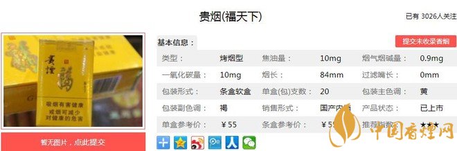 貴煙福天下多少錢一包 貴煙福天下口感及參數(shù)介紹