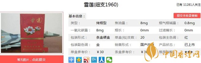以上便是由香煙網小編為大家介紹的關于雪蓮細支1960多少錢一包 雪蓮細支1960口感及參數(shù)介紹的相關信息,想要了解更多有關內容請點擊:鉆石一品荷花好抽嗎 鉆石一品荷花獨家口感測評