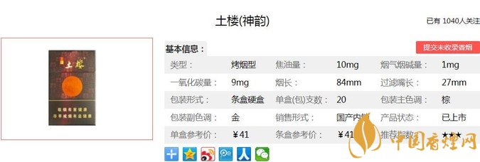 土樓神韻采用永定土樓生態(tài)有機煙葉為煙絲主料,凝聚客家文化之大成。氣質(zhì)濃厚,底蘊深厚,以世界文化遺產(chǎn)之名及中國傳統(tǒng)藝術(shù)之品,象征客家熱情好客之禮,土樓團圓如意之情,地域特色明顯。經(jīng)香煙網(wǎng)小編市場調(diào)查土樓神韻售價為41元/包。