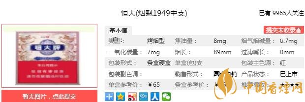 以上便是由香煙網(wǎng)小編為大家介紹的關于恒大煙魁1949中支價格及參數(shù)介紹 恒大煙魁1949中支口感分析的相關信息,想要了解更多有關內(nèi)容請點擊:南京炫赫門多少錢一包 南京炫赫門口感及參數(shù)介紹