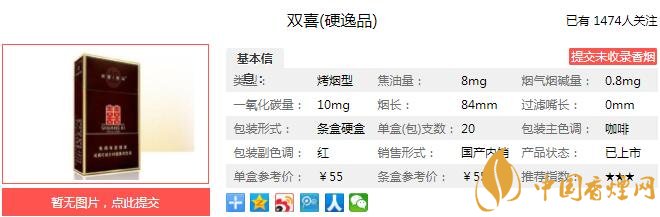 以上便是由香煙網(wǎng)小編為大家介紹的關(guān)于雙喜硬逸品多少錢一包 雙喜硬逸品口感及參數(shù)介紹的相關(guān)信息,想要了解更多有關(guān)內(nèi)容請點擊:黃金葉硬黃金多少錢一盒 黃金葉硬黃金口感醇香細膩