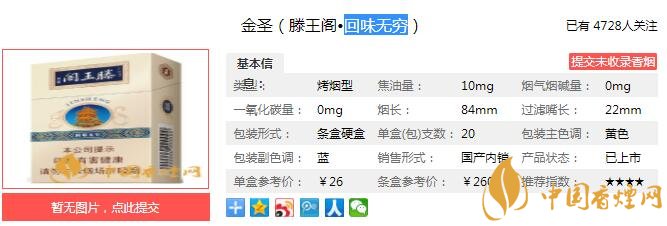 以上便是由香煙網(wǎng)小編為大家介紹的關(guān)于金圣(滕王閣·回味無窮)多少錢一包 回味無窮口感及參數(shù)介紹的相關(guān)信息,想要了解更多有關(guān)內(nèi)容請點(diǎn)擊:阿里山香煙好抽嗎 六款阿里山香煙口感分析