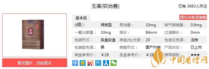 尚善玉溪秉承玉溪家族醇厚清香的經典本味,精選云煙之鄉(xiāng)優(yōu)質煙葉,煙葉配伍豐富而協(xié)調,呈現(xiàn)溫潤醇香的細膩口感,軟包硬化的獨特包裝,完美保護每支尚善玉溪的卓越享受。經香煙網(wǎng)小編市場調查玉溪軟尚善售價為28元/包。