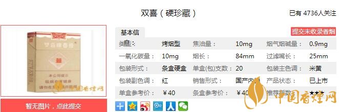 把無香精香煙的概念運用到了極致,沒有用任何香精香料,單純憑對原料的選材、烘烤調制、工藝配伍把煙做到這個味道的確是非常了不起。經(jīng)香煙網(wǎng)小編市場調查雙喜硬珍藏售價為40元/包。