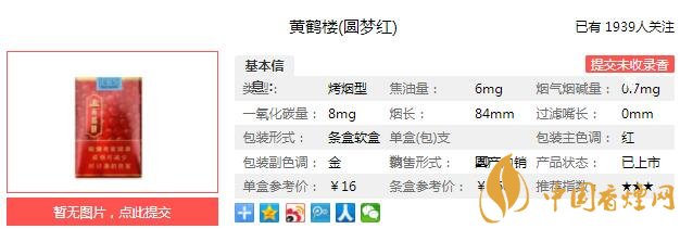 黃鶴樓軟圓夢(mèng)紅煙支長84mm,過濾嘴長25mm,過濾嘴上有分子結(jié)構(gòu)圖和黃鶴樓圖案。煙支感覺很不錯(cuò),看著很華麗,很有意義層次。下面我們一起來看黃鶴樓軟圓夢(mèng)紅的參數(shù)信息:焦油量:6mg 煙堿量:0.7mg 一氧化碳量:8mg