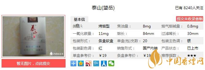 “泰山(望岳)”是2008年山東中煙工業(yè)公司推出的泰山牌系列產(chǎn)品中的主力型號。“望岳泰山”在設計上追求新口味、新工藝、新享受,采用了綜合降焦減害技術及超高溫HXD氣流烘絲技術,使產(chǎn)品品質(zhì)更臻完美。經(jīng)香煙網(wǎng)小編市場調(diào)查泰山望岳售價為19元/包。