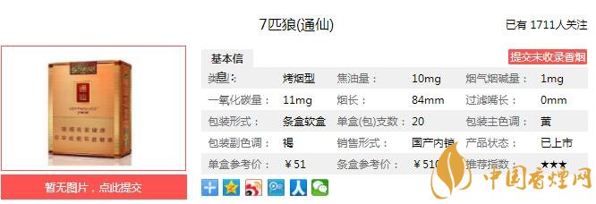 隨著高端人士對(duì)于卷煙吸食的安全、健康因素愈加關(guān)注,“七匹狼”秉承消費(fèi)者利益至上,開創(chuàng)高端卷煙“全生態(tài)”體驗(yàn),確立了“煙香自然突出,煙氣醇和細(xì)膩,煙味細(xì)柔綿長(zhǎng)”的高端品類風(fēng)格特征,創(chuàng)建“生態(tài)綿柔香”高端卷煙全新品類。 經(jīng)香煙網(wǎng)小編市場(chǎng)調(diào)查七匹狼通仙售價(jià)為51元/包。