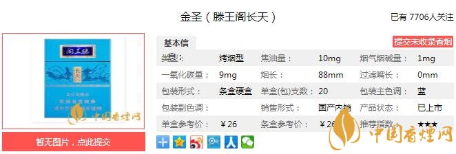一、金圣(滕王閣長天)香煙價格