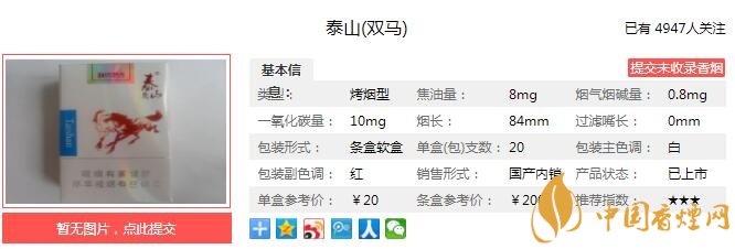 以上便是由香煙網(wǎng)小編為大家介紹的關(guān)于泰山雙馬煙價格 泰山雙馬8mg口感及參數(shù)分析的相關(guān)信息,想要了解更多有關(guān)內(nèi)容請點(diǎn)擊:泰山香緣口感怎么樣 沉香與煙草本香相結(jié)合