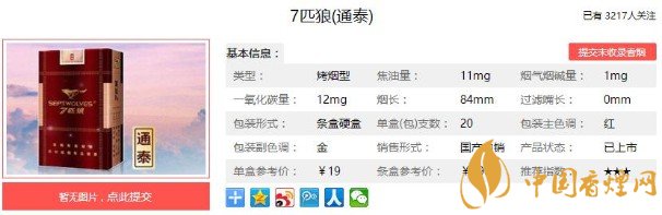 以上便是香煙網小編為大家介紹的關于高端煙品低端價格,七匹狼通泰售價只需要19元一包!的相關信息,大家看完之后是不是對于這款香煙更加了解呢,想要了解更多內容歡迎點擊: