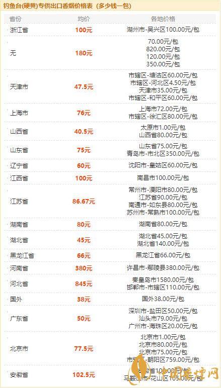 以上就是香煙網為您提供的釣魚臺硬黃香煙基本信息和2020釣魚臺(硬黃)專供出口香煙價格表,想要知道更多關于香煙的信息,請時刻關注香煙網。