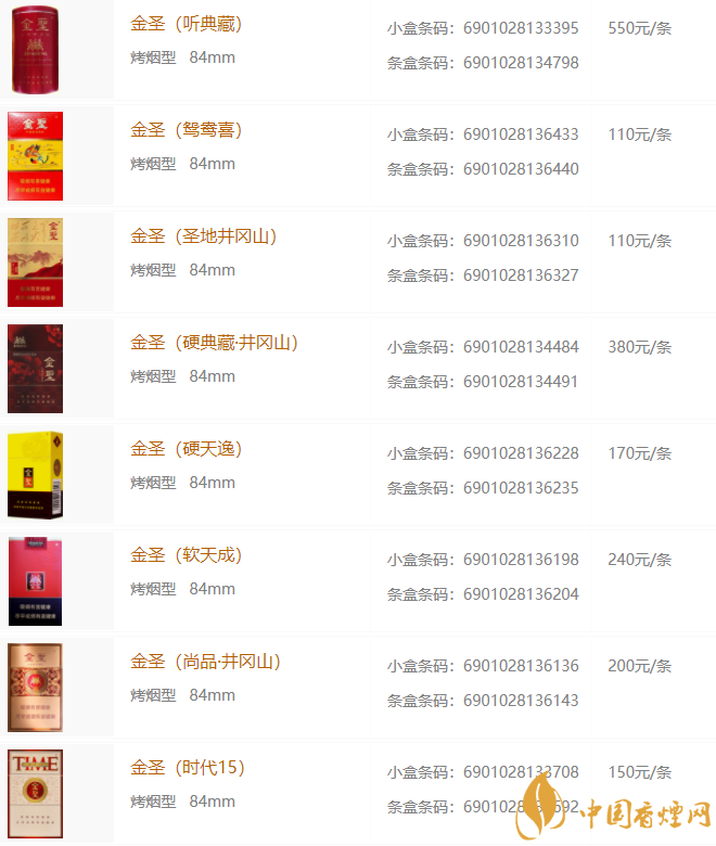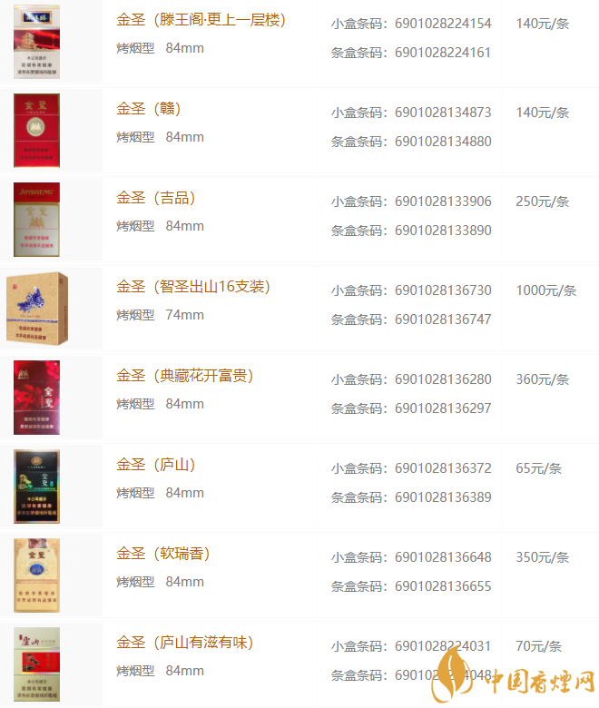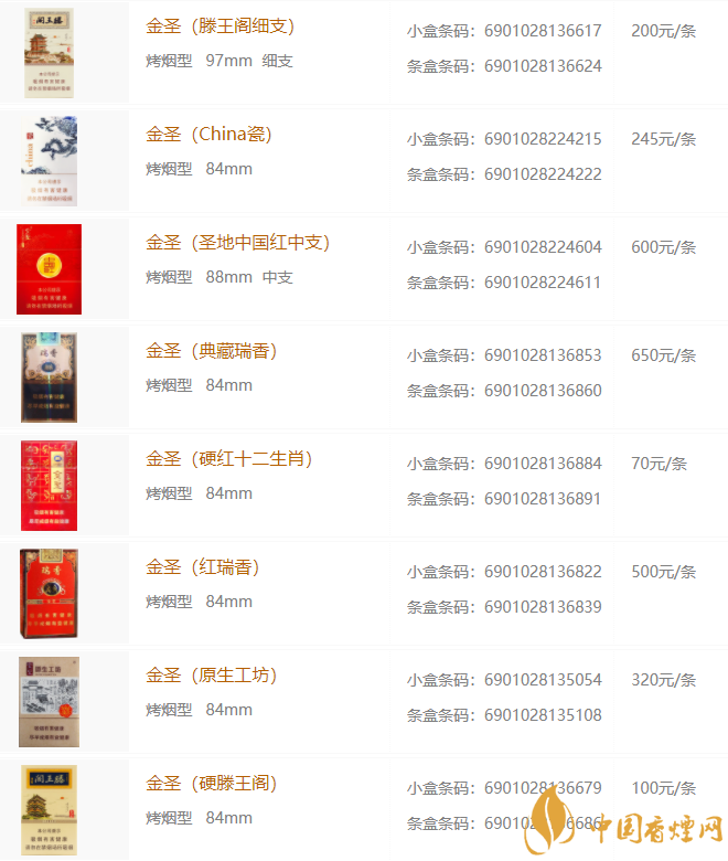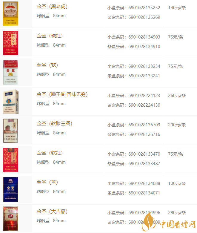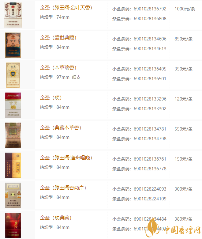 金圣香煙多少錢包 2025金圣香煙價格種類大全