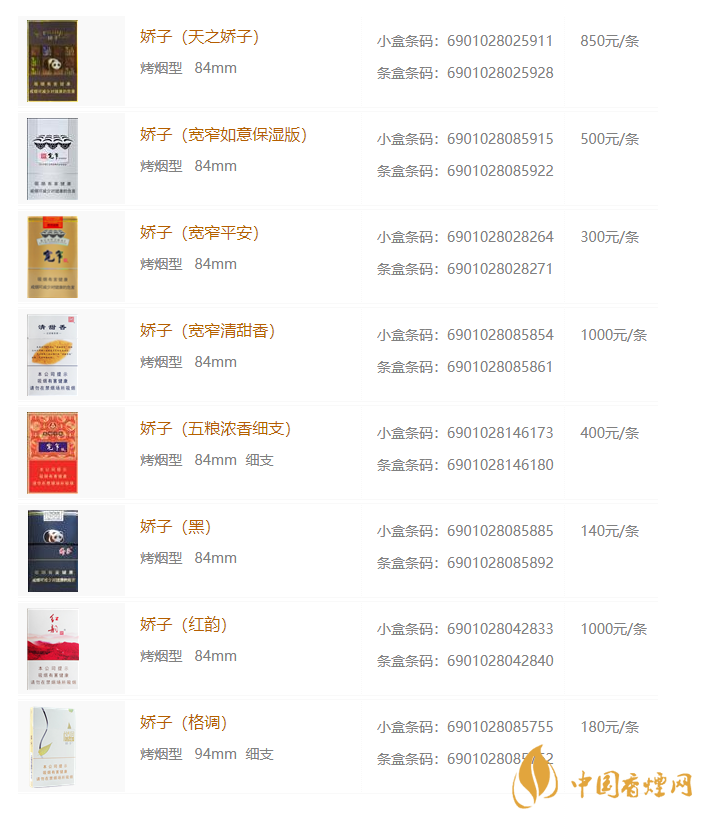 2020年嬌子香煙價格表圖