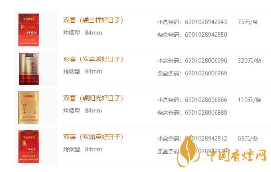 2020年雙喜好日子香煙價(jià)格表