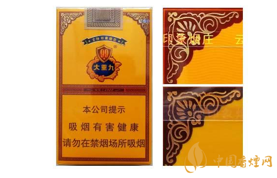 細支大九采用硬盒包裝,外觀印刷設計沒有什么改變,無雜質(zhì)的金礦黃襯托盾牌花邊“大重九”,背面是麥穗包裹99,簡單大氣的包裝卻不失豪華端莊,那么這款大重九多少錢一包,它的價格為100元/包。