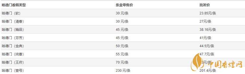 從哈德門批發(fā)價和零售價區(qū)別對比中,我們可以清晰地看出哈德門的批發(fā)價明顯是要低于條盒零售價。其中哈德門(壹號)是哈德門系列中批發(fā)和零售價差最大的一款,價差達到28.6元,這價差比哈德門(清香)的批發(fā)價都要多出1.6元。