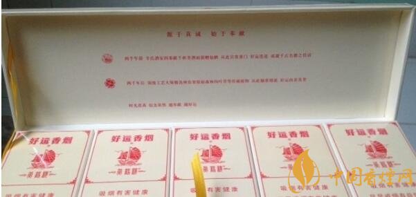 在黃鶴樓香煙大全及價格中,好運有別于樓樓其他品系,凸顯簡單、樸實,沒有以前黃鶴樓香煙的那種花里胡哨的感覺。除了黃鶴樓和好運的品牌標識之外,正反面都印有紅色帆船,和“一帆風(fēng)順”的字樣。