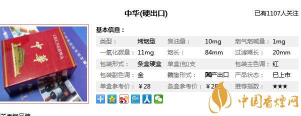 煙界的中華,有如白酒界的茅臺(tái),其歷史積淀和人文底蘊(yùn)極其豐厚。中華香煙執(zhí)中國(guó)煙草之牛耳數(shù)載。數(shù)十年前,60元的軟中和40元的硬中,價(jià)格遠(yuǎn)遠(yuǎn)高于其它各省的煙草品牌,令眾煙望塵莫及,我們知道了庫克中華是什么煙后,出口版的中華的價(jià)格也會(huì)比內(nèi)銷版的價(jià)格低,那么這款庫克中華的零售參考價(jià)為28元/包。
