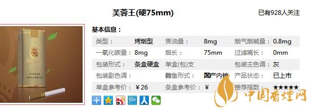 芙蓉王香煙于1994年誕生,參與中國高檔卷煙市場競爭,意在搶奪20元檔以上這一當時的價位市場空白點,然而芙蓉王香煙做的非常成功,它的風(fēng)格深受廣大卷煙消費者喜愛,更因其內(nèi)在品質(zhì)被譽為“中式卷煙的典范代表”。在對新出短支黃芙蓉王售價進行分析之前,先來看看這款芙蓉王短支多少錢一包,這款香煙叫做芙蓉王(硬75mm)售價為26元/包。