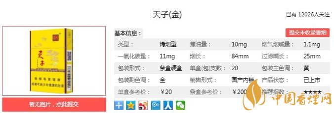 一、天子金香煙價格