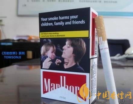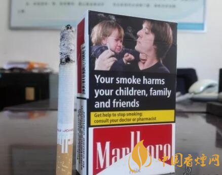 煙盒左右側面各印有黑框樣式的警示語句,也是后期歐盟版本萬寶路的煙盒包裝特點。