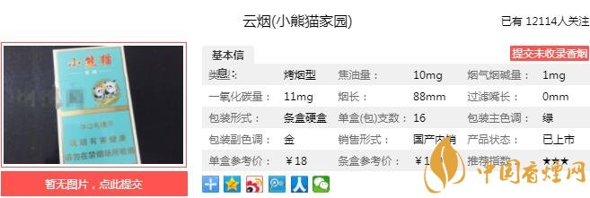 小熊貓家園采用來(lái)自云南會(huì)澤、文山的烤煙葉、阿拉伯的水煙葉以及津巴布韋的雪茄煙葉復(fù)配而成,小熊貓家園也正是在這樣優(yōu)質(zhì)復(fù)配煙絲的基礎(chǔ)上散發(fā)出煙草獨(dú)特的煙草自然本香。經(jīng)香煙網(wǎng)小編市場(chǎng)調(diào)查云煙小熊貓家園售價(jià)為18元/包。